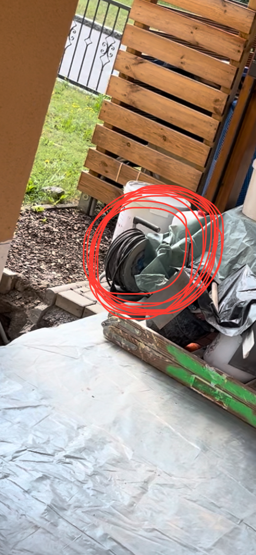 Unterhalb ein Bild der Kabeltrommel unterm Carport vom 21.07.2024